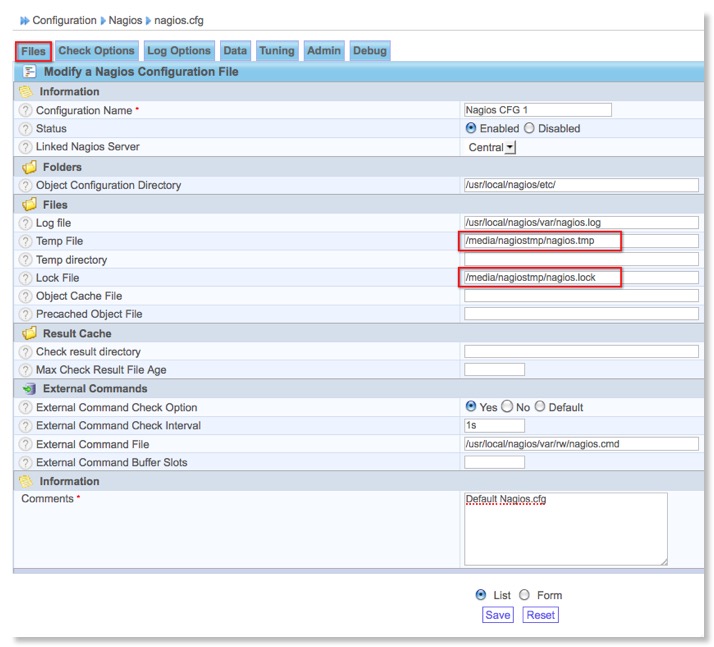 - Fichier temporaire (Temp File) : /usr/local/nagios/var/nagios.tmp par /media/nagiostmp/nagios.tmp
